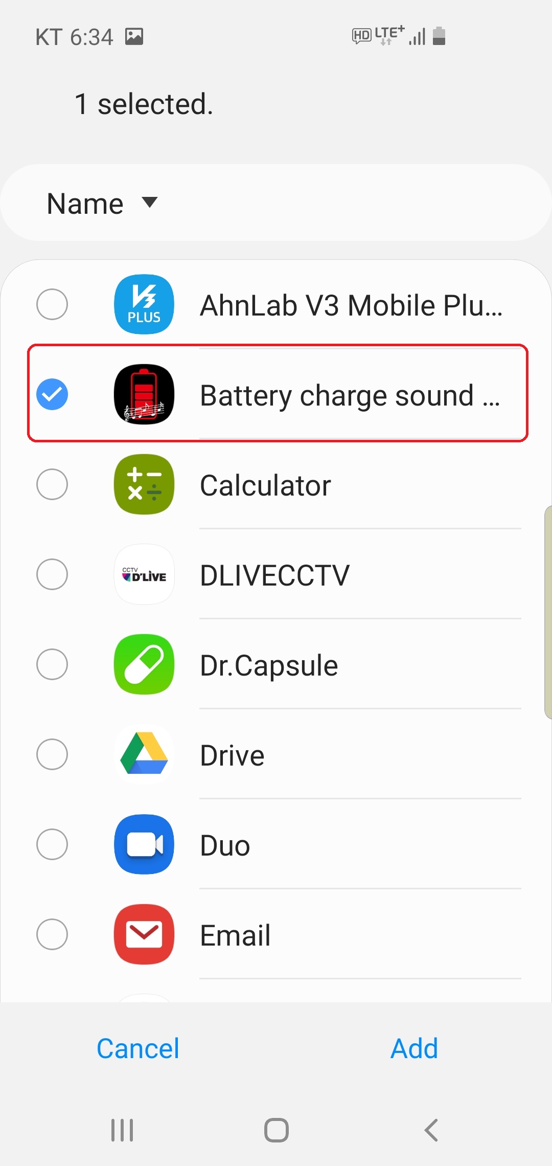 5. Locate the "Battery charge sound alert" app and click the "Add" button at the bottom.