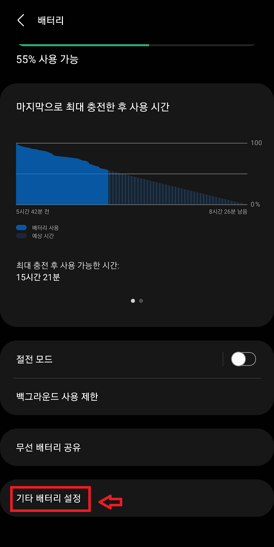 1. 배터리 > 기타 배터리 설정을 클릭합니다.