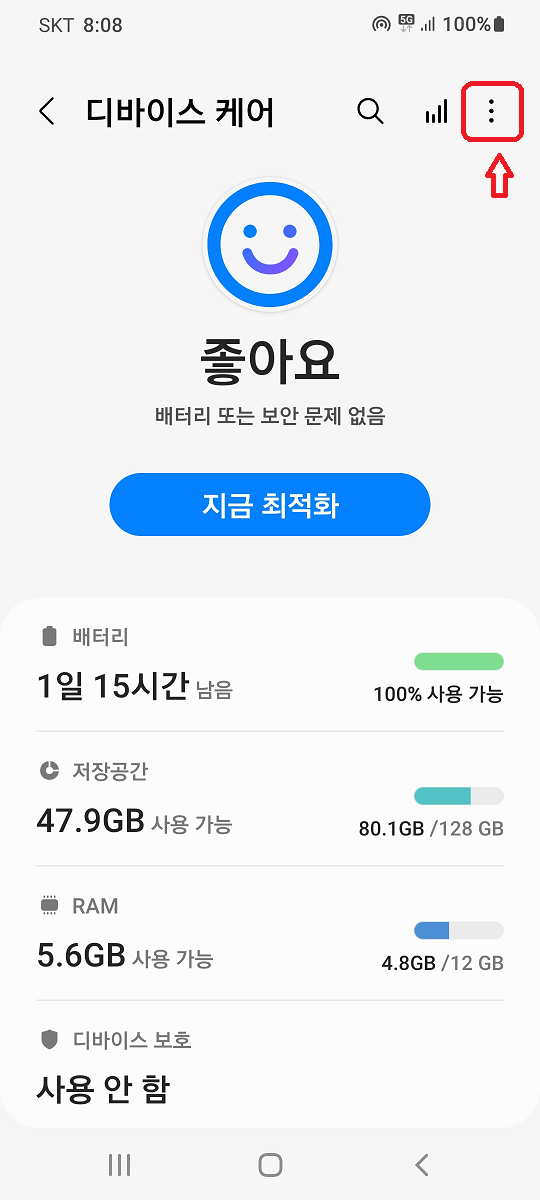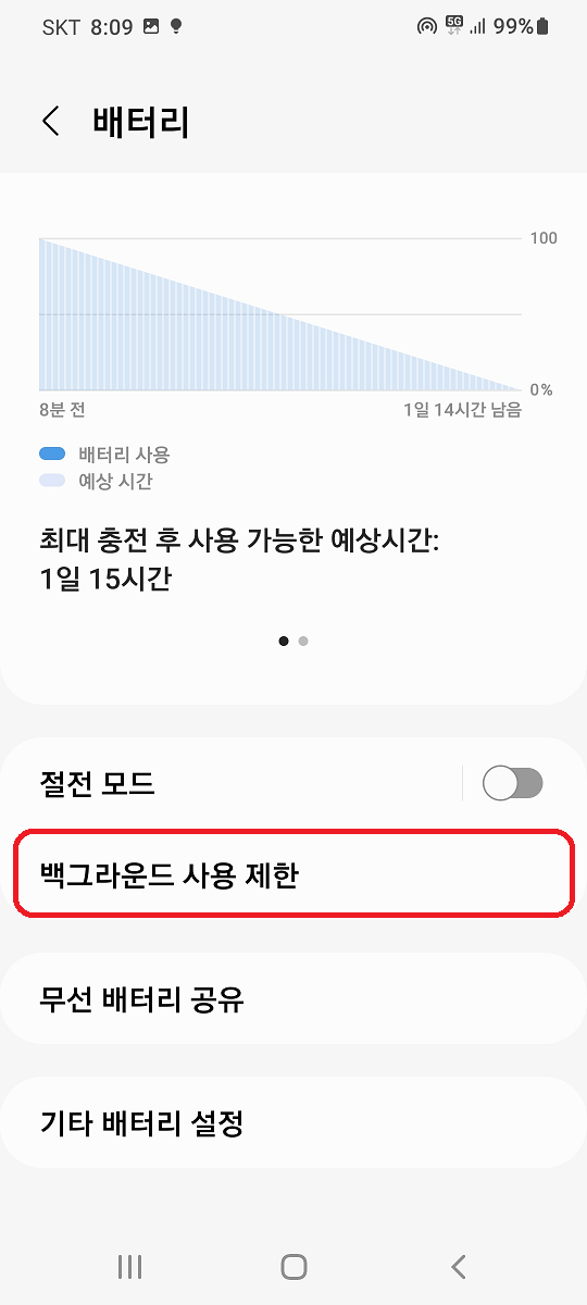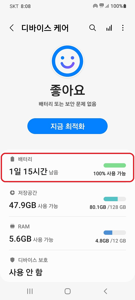 2. 배터리 최적화를 비활성화(해제) 하세요.