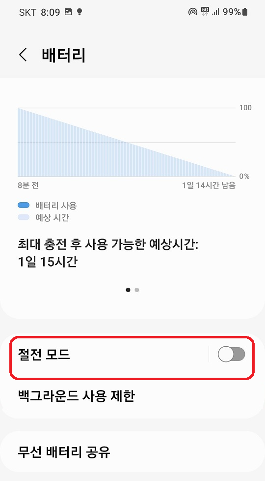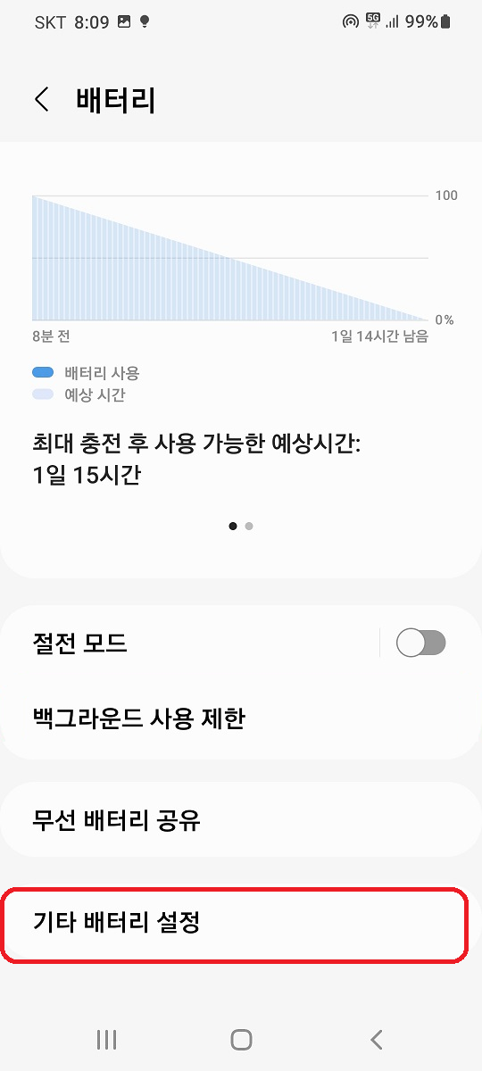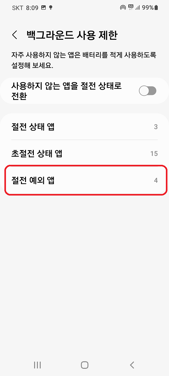 (절전 상태 앱 또는 초절전 상태 앱을 클릭해보시고 충전완료알림 앱이 추가되어 있다면