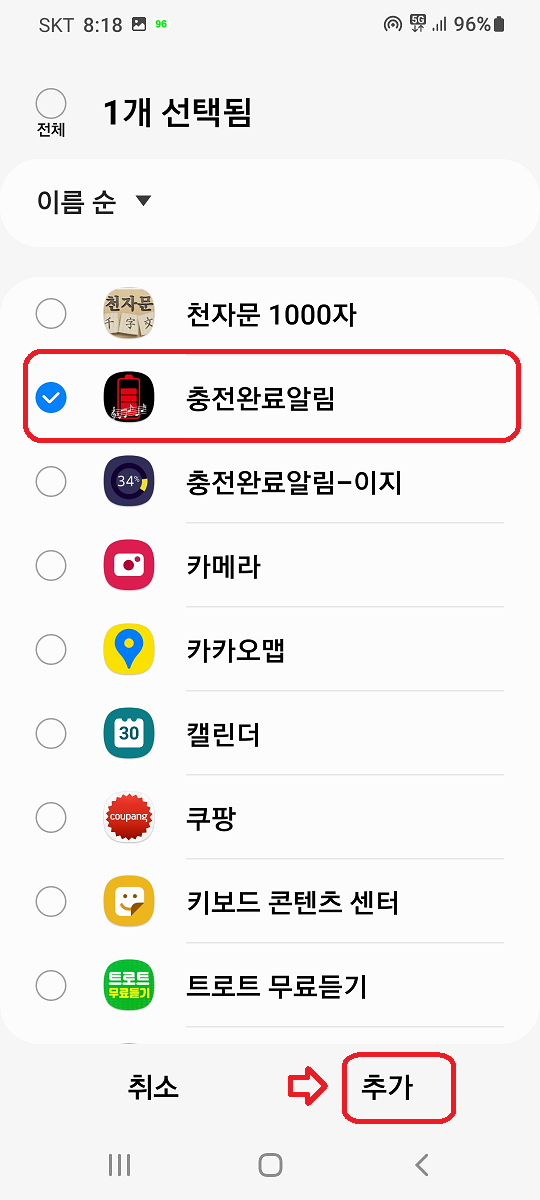 7. 충전완료알림 앱을 찾아서 체크해주세요.