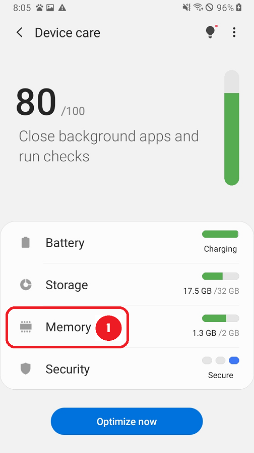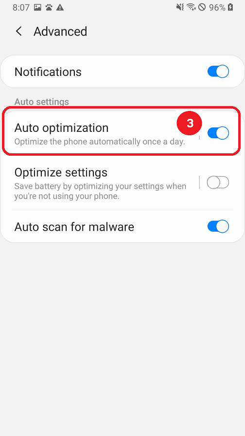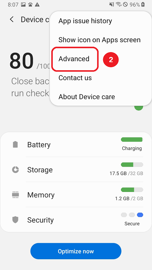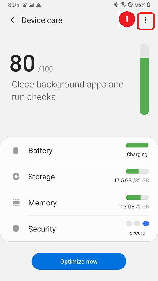 1. Go back to Device care and Click on the 3-dot(⁝) menu.